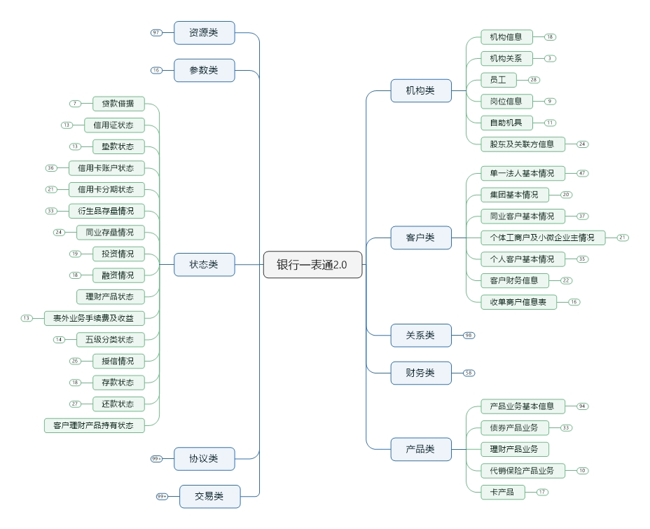 一表通2.0试点发布10大主题90张表单,并发布校验规则和分析维度表体系明细层报送主题分布。