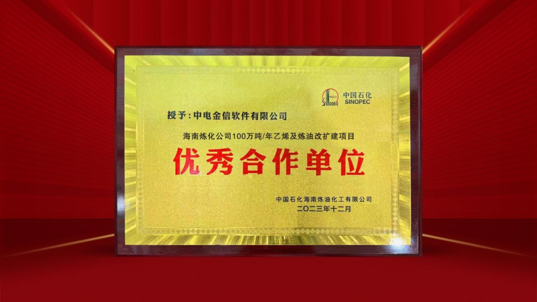海南炼化采用“数据+平台+应用”新模式,奋力打造未来工厂新范式,有力促进了企业经营决策、安全环保、生产运行、能源管理、项目建设等方面管控效率提升,被工业和信息化部评为2023年度智能制造示范工厂。点亮智慧生产,中电金信深度参与海南炼化智能工厂项目建设,凭借强大的产品创新研发能力和优秀的项目交付能力,获得由海南炼化颁发的“优秀合作单位”称号,该奖项旨在表彰中电金信在海南炼化公司100万吨/年乙烯及炼油改扩建项目中做出的突出贡献。