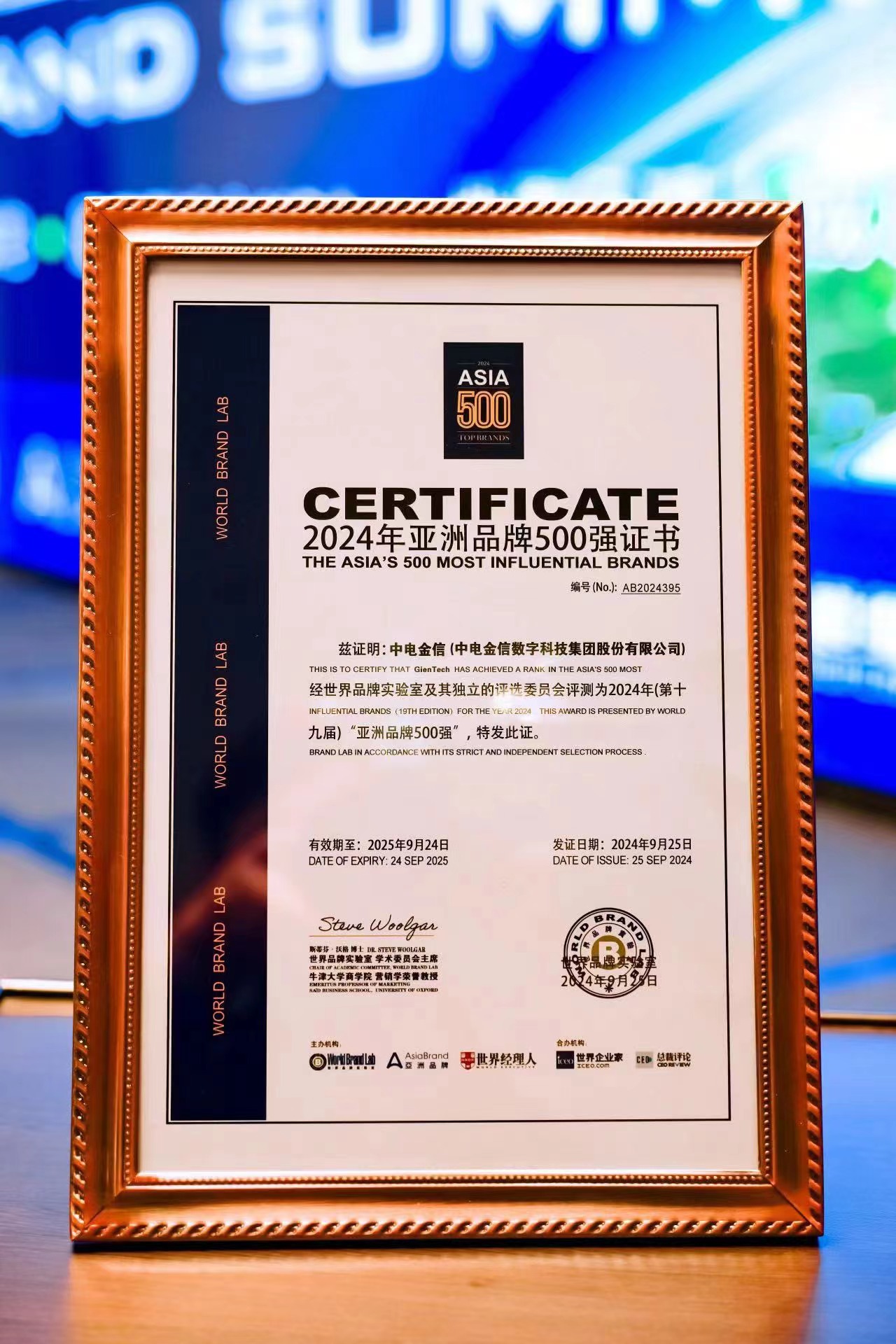 9月25日,由世界品牌实验室主办的2024年“亚洲品牌大会暨亚洲品牌500强发布会”在香港举办,中电金信凭借卓越的品牌影响力和市场表现成功入选“亚洲品牌500强”。入选企业还包括国家电网、工行、华为等。