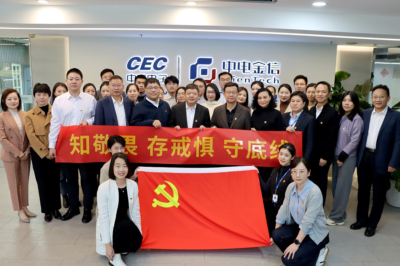 10月24日,中国电子党组成员、副总经理周进军一行到中电金信调研指导,听取党建工作和经营管理情况汇报,参加中电金信党委直属支部“‘警示课堂’正己检身”主题党日活动,并就高质量发展、业务转型等重点问题进行交流研讨。