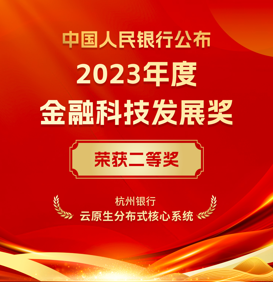 近日,中国人民银行公布“2023年度金融科技发展奖获奖项目”的获奖单位与奖项,其中,杭州银行的“云原生分布式核心系统”荣获二等奖。