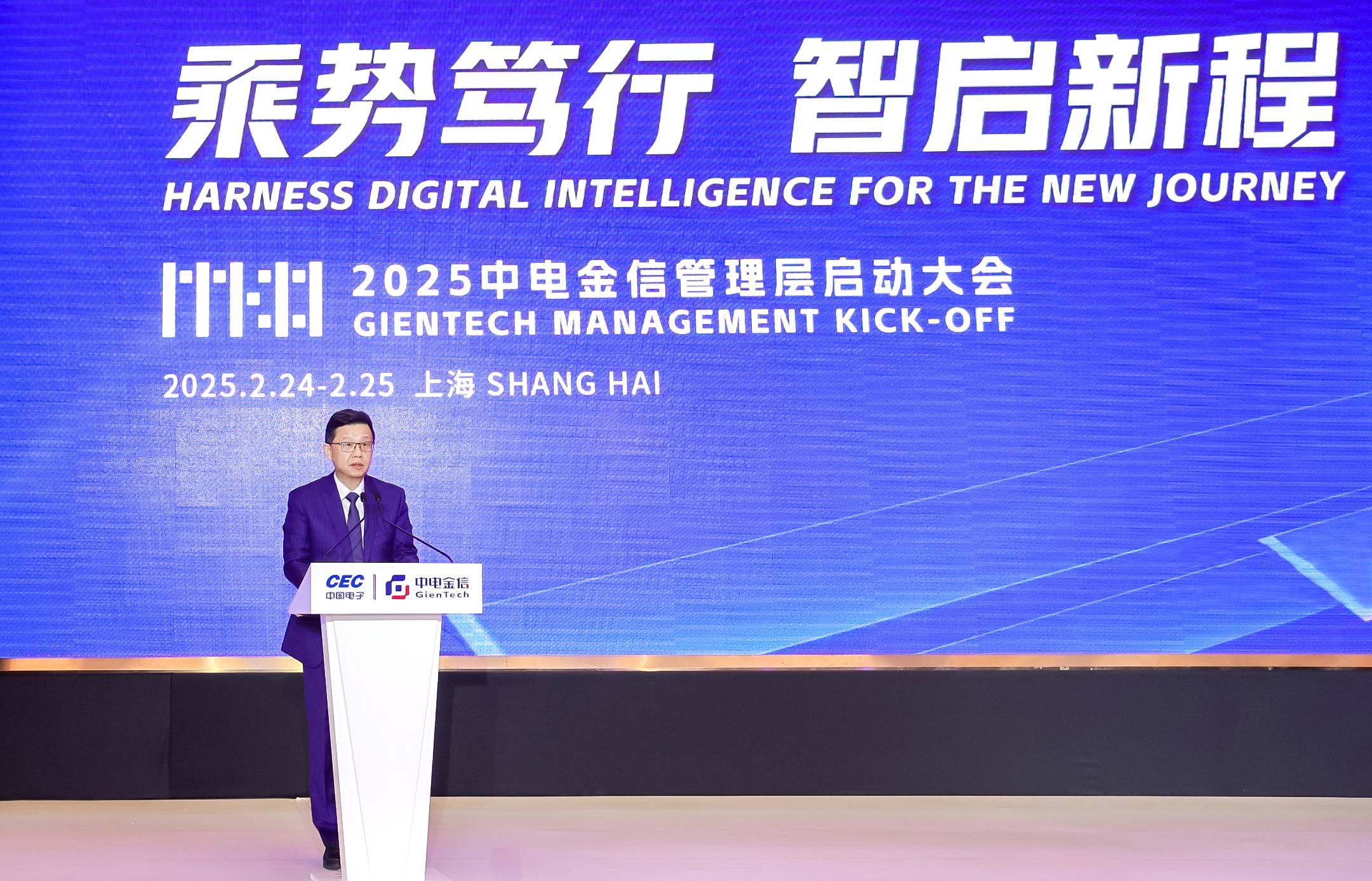 中电金信党委书记、董事长李刚在讲话中指出,2024年,中电金信在集团公司党组的领导下,迎挑战、破难关,实现了多项技术攻关与产品方案创新,支撑了多个国家重大工程和重点项目建设,为推动国家新型数字基础设施产业化、规模化应用做出贡献。2025年是“十四五”收官之年、“十五五”谋篇布局之年,党的二十大报告明确提出要加快建设网络强国、数字中国,这为国家的网信产业指明了发展方向,在此关键节点,中电金信将牢记服务国家战略的基本宗旨,紧扣中国电子战略部署,扎实推进集团公司价值体系重塑、产业体系重构、管理体系重建战略措施,紧密围绕战略使命新、产业结构新、治理模式新,加快技术创新和产品研发,不断提升公司的核心竞争力,奋力谱写中电金信高质量发展新篇章。