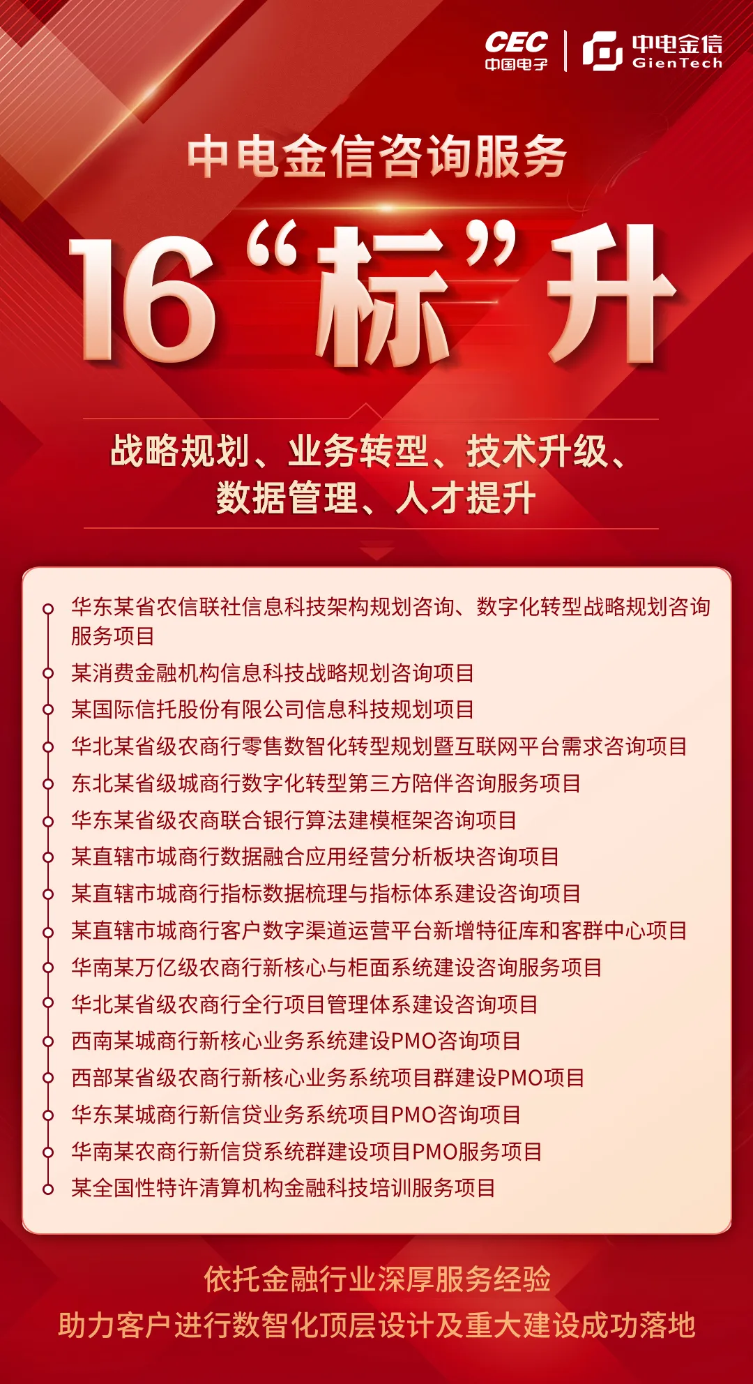 咨询业务16“标”升!中电金信携手金融机构共启数智化转型新篇章