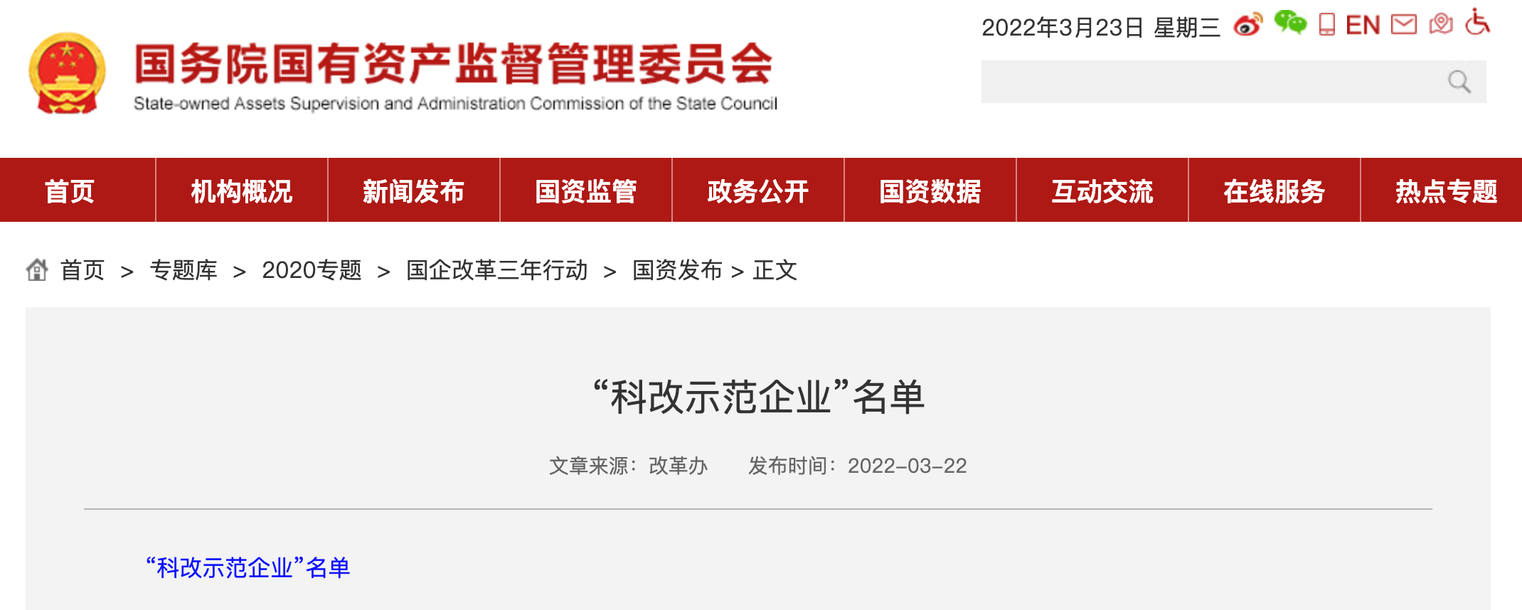 3月22日,国务院国有企业改革领导小组办公室公布“科改示范企业”名单,中电金信名列其中。