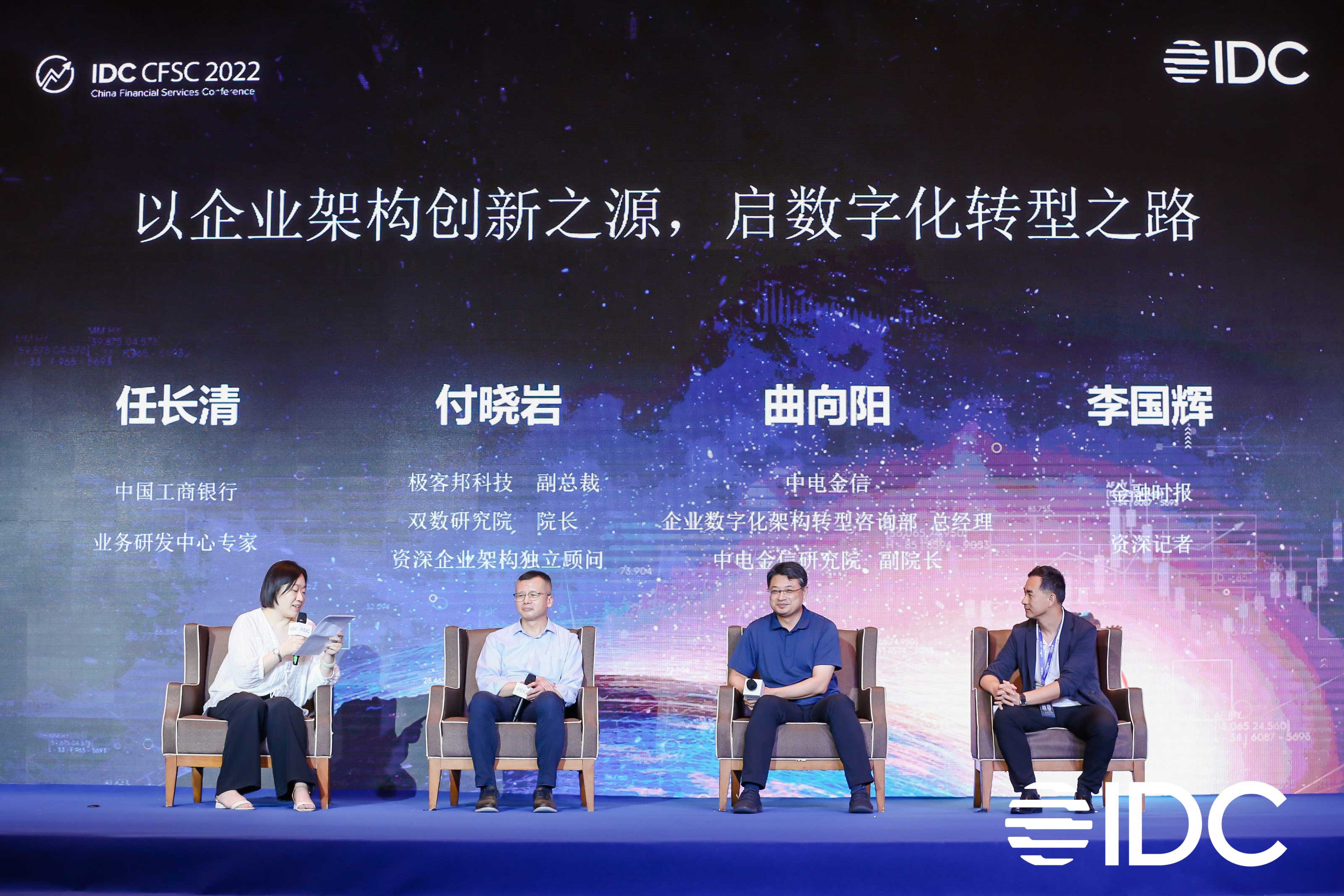 在“2022 IDC中国数字金融论坛”的“高峰对话”环节,中电金信企业数字化架构转型咨询部总经理、中电金信研究院副院长曲向阳和几位嘉宾围绕“以企业架构创新之源,启数字化转型之路”这个主题,对金融行业的数字化转型进行了进一步的探讨。曲向阳认为,数字化转型需要从业务出发,坚持业务建模驱动业务发展,坚守服务于业务的初心,这也是中电金信多年一直坚持的原则。
