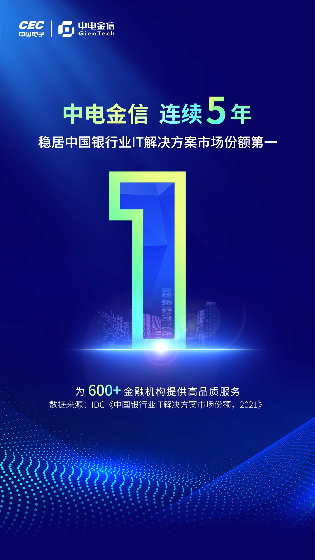 日前,国际研究咨询机构IDC发布《中国银行业IT解决方案市场份额2021》报告,中国电子成员企业中电金信再度获得市场份额第一名。这是中电金信连续第5年稳踞榜首,表明市场对中电金信的高度认可,同时也是中电金信绝对实力的体现。