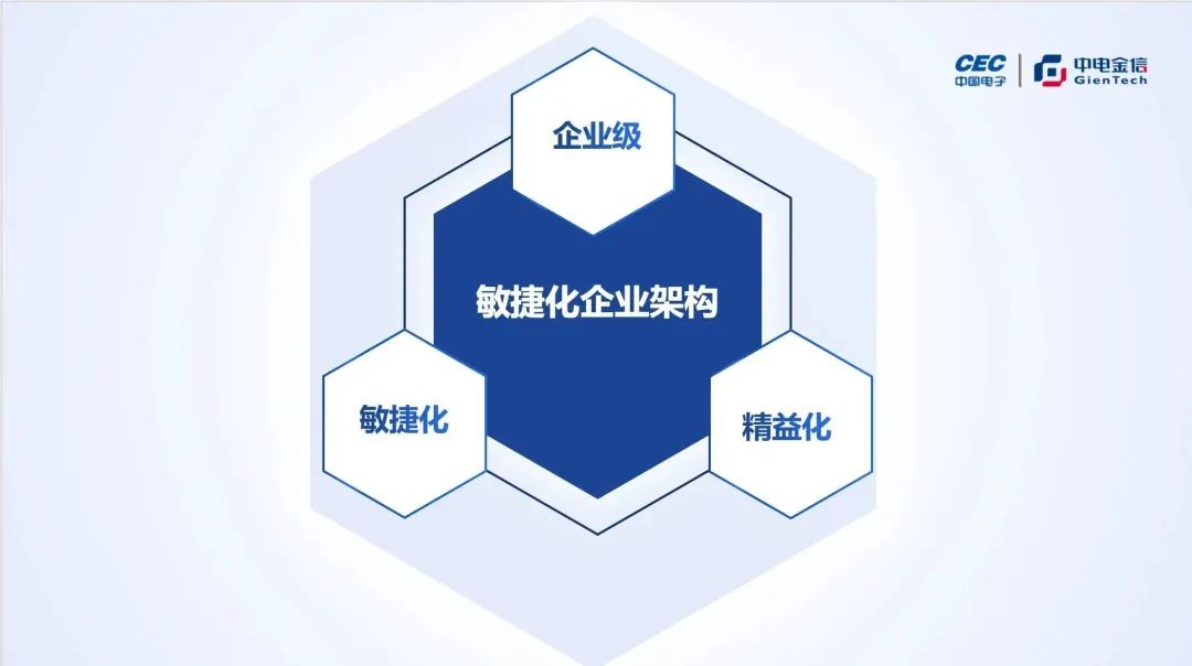 “中电金信敏捷化企业架构引入了‘敏捷’和‘精益’的概念?!痹谇蜓艨蠢?,“组织敏捷性是让资源流向组织中产生更多价值的业务领域,减少流动过程中的消耗,提高流动的速率。精益则是致力于将所有资源进行整合,以策划、驱动、改进、控制为抓手开展一系列活动以达到运营目标,精髓是杜绝浪费,实现价值优先。”