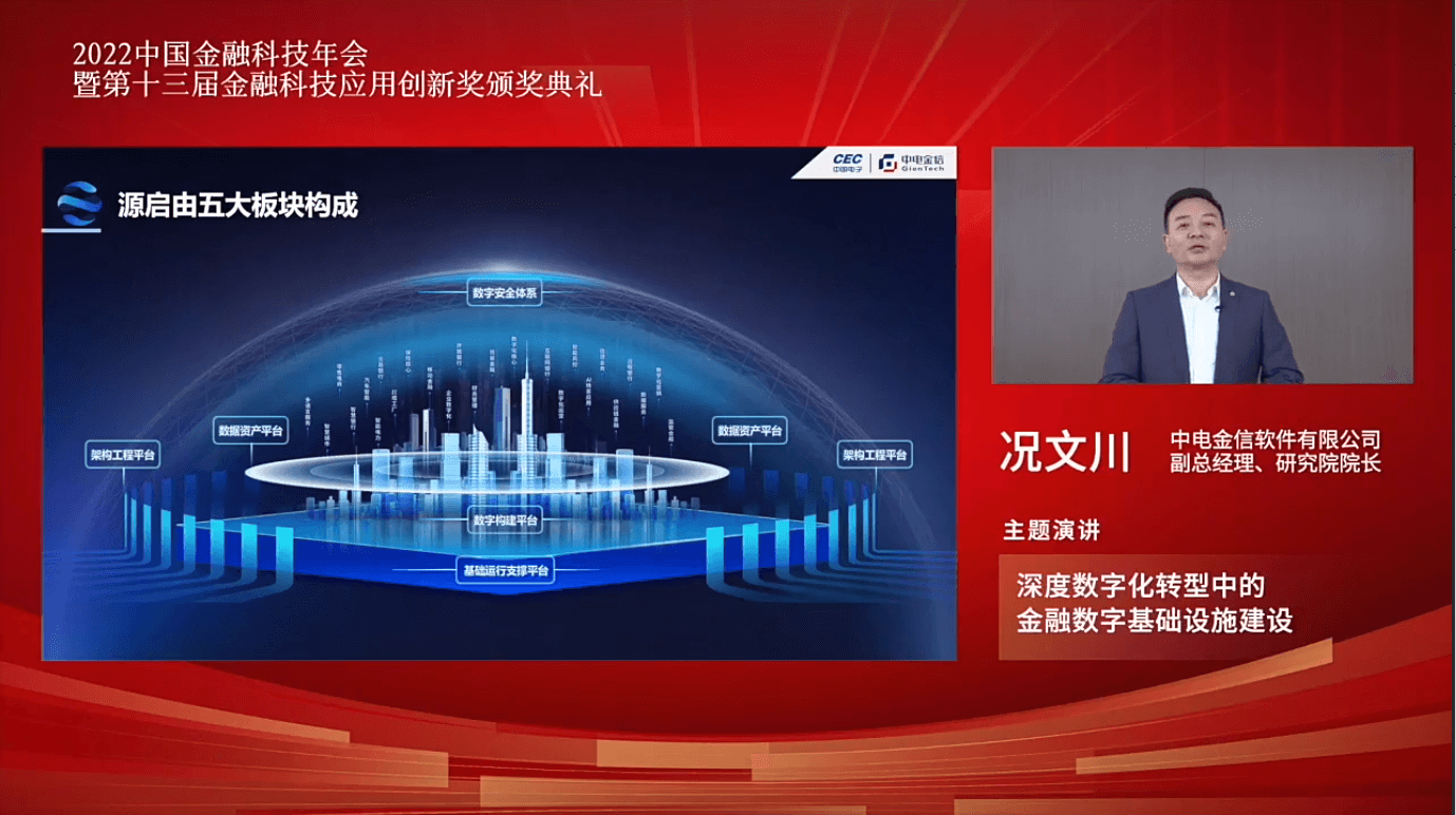 金融级数字底座“源启”,是中国电子面向金融等关键行业打造的新型数字基础设施。在金融科技年会上,中电金信副总经理、研究院院长况文川发表主旨演讲,详细介绍了“源启”的相关实践。