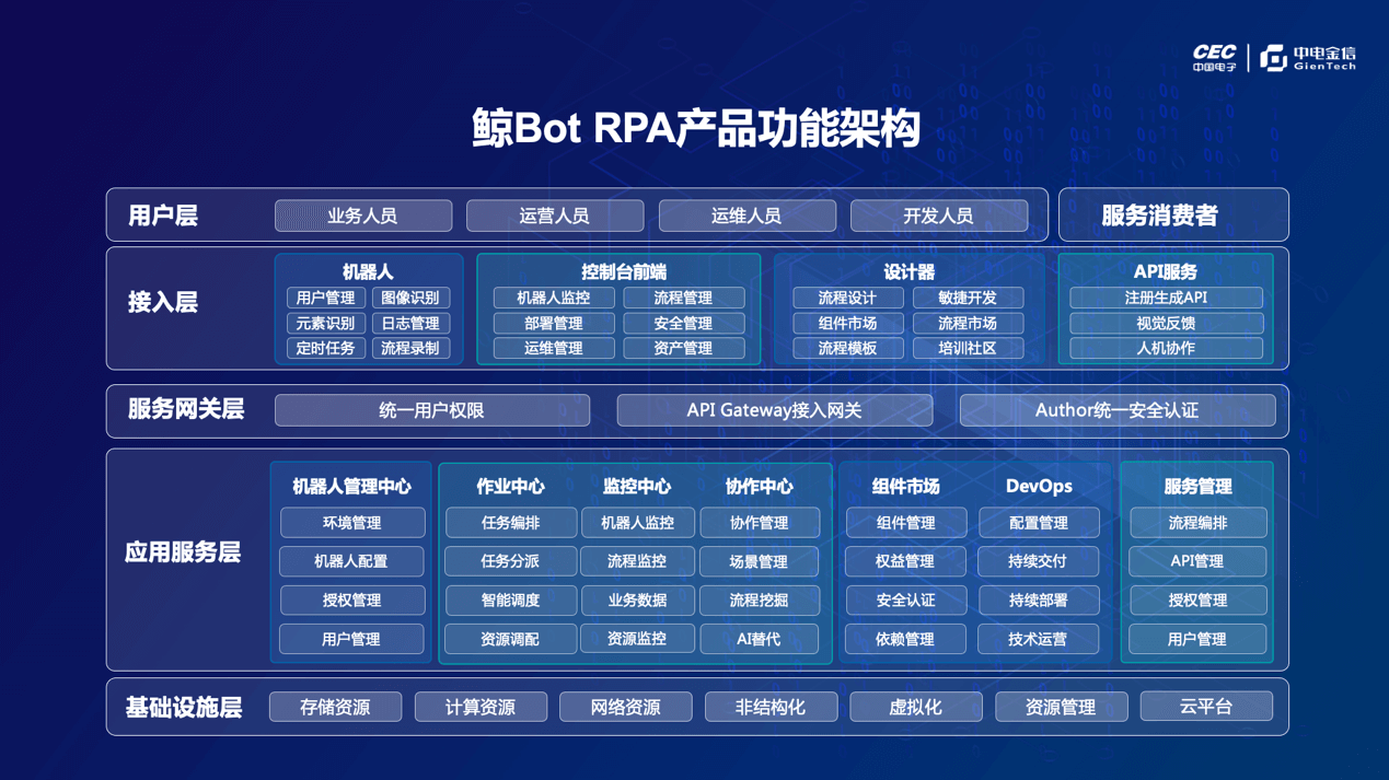 中电金信鲸Bot RPA通过视觉反馈专利技术,建立了统一识别和反馈的机制,能够实时处理业务系统的异常,结合重试机制和人机协作,达到稳定可靠的要求。通过人机协作机制,鲸Bot RPA实现了技术架构与全场景流程自动化。