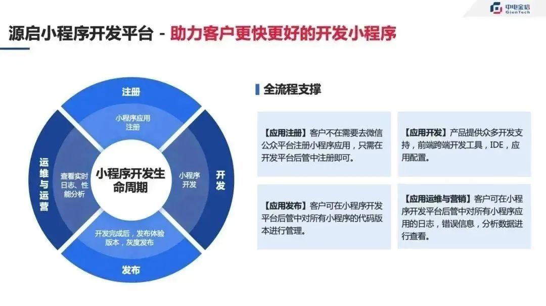 随着长期的应用实践,中电金信将不断挖掘、整合客户需求,精准把握客户痛点,不断完善扩充源启小程序开发平台功能,为客户提供优质、简洁的移动互联网产品与服务。