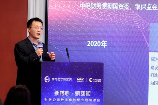 中电财务副总经理张砚文在会上分享了由中电财务与中电金信联合研发的全国首个全量业务运行在国产化分布式架构上的“财务公司新一代核心业务系统”产品的建设经验、运营情况,指出其对财务公司数字化转型及管理服务的重要意义和价值。