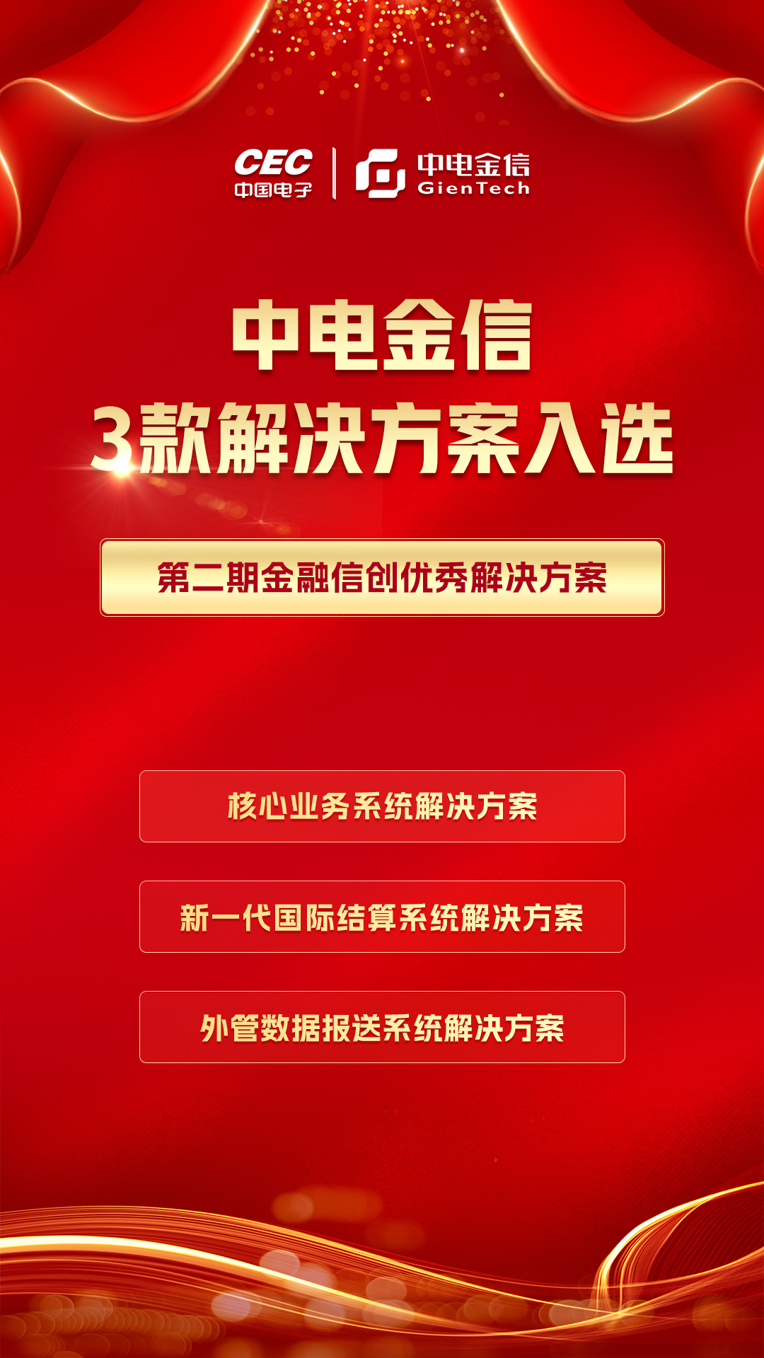 近日,中国金融电子化集团有限公司、金融信创生态实验室发布第二期金融信创优秀解决方案,中电金信3款解决方案——核心业务系统解决方案、新一代国际结算系统解决方案、外管数据报送系统解决方案收录其中。