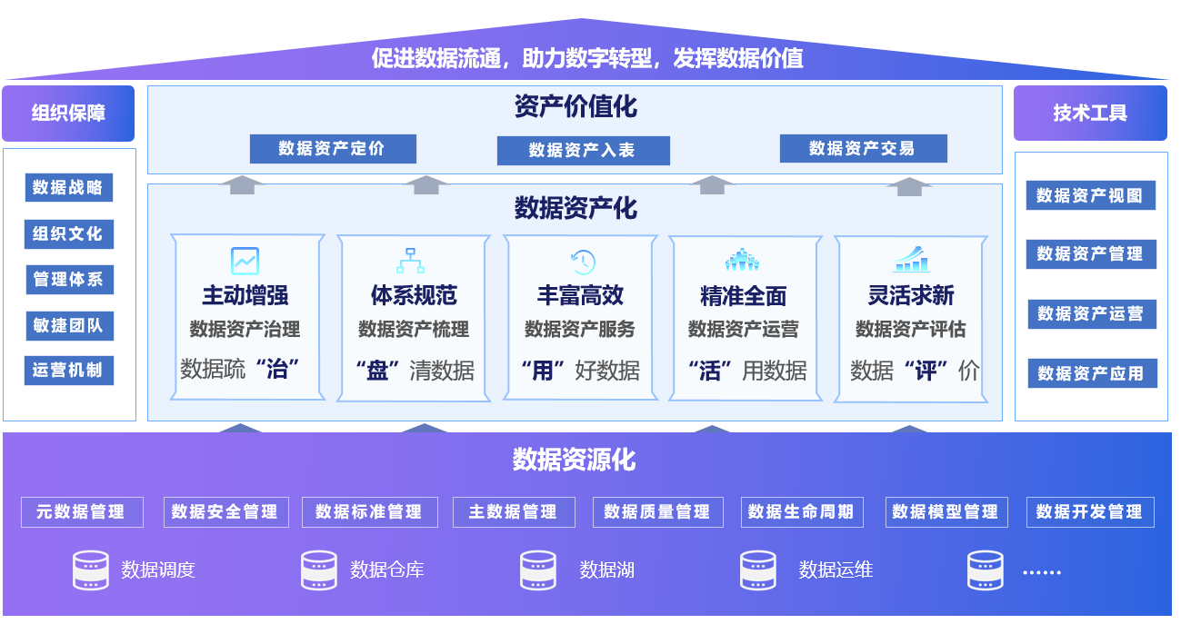 数据作为新兴生产要素,是核心战略资源,是数字化转型的核心驱动力。在数字经济环境下,企业应制定业务、技术、数据三位一体的战略规划,设计数据战略蓝图。明确数据驱动的战略愿景,制定数据治理、数据资产管理与运营、数据应用等各项能力举措,实现从筑牢数据基础到畅通数据共享,再到数据增值赋能的进阶提升。并制定科学可行的实施路径,不断深度挖掘数据要素潜力,提升数据资产价值,以全面赋能业务领域,实现降本增效和创新。