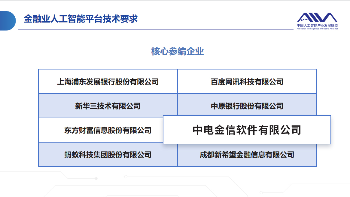 中电金信参编《金融业人工智能平台技术要求》标准,助力金融业AI技术应用标准化