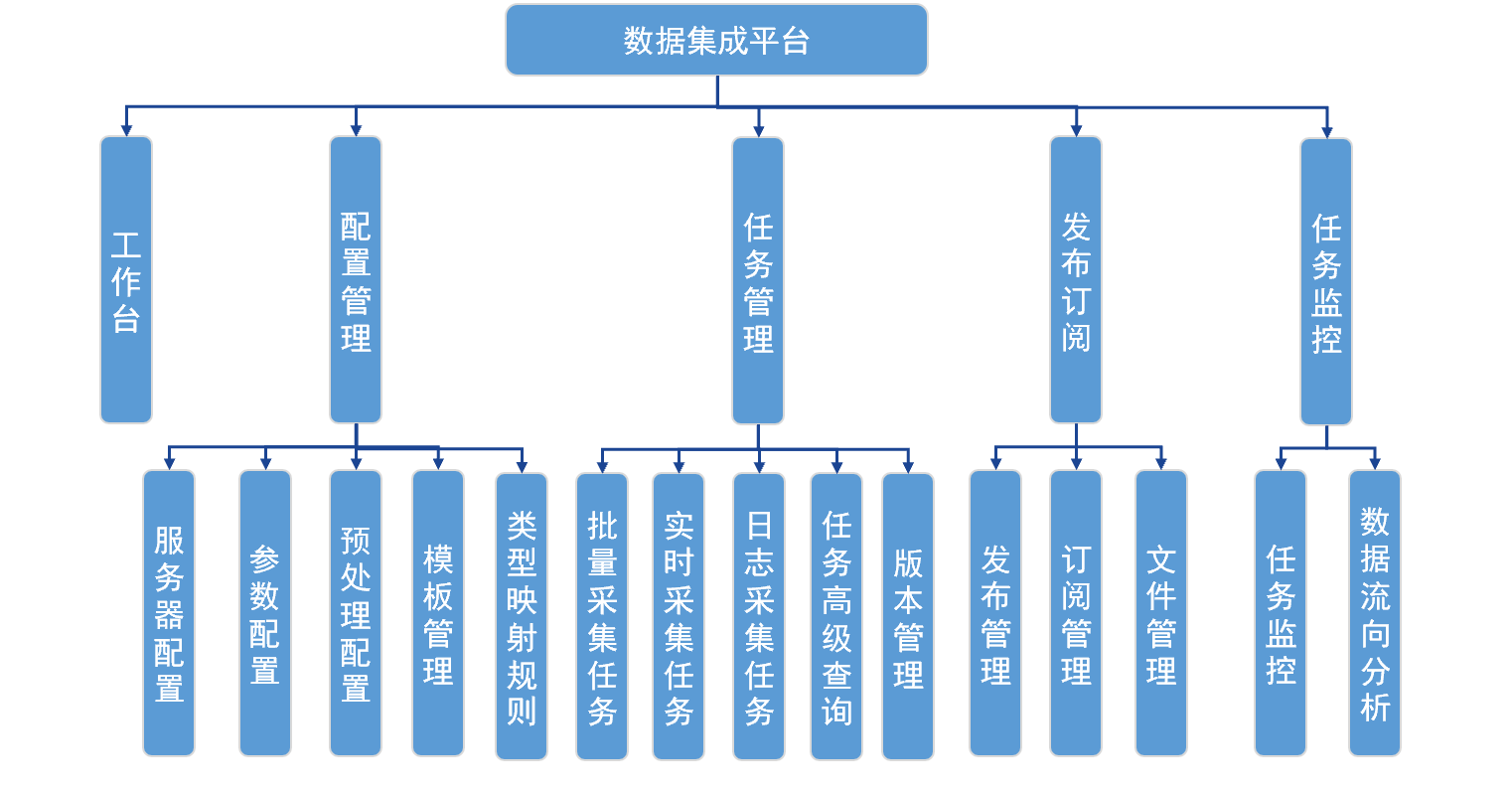 源启数据集成平台主要包含参数配置、预处理配置、版本管理、任务监控等功能。