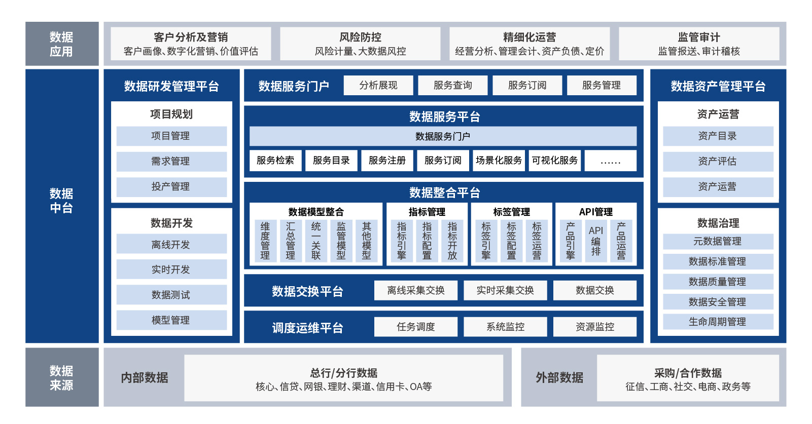 实现数据高度整合、数据能力复用,从夯平台、治数据、建服务、触场景四大方向,实现数据服务化