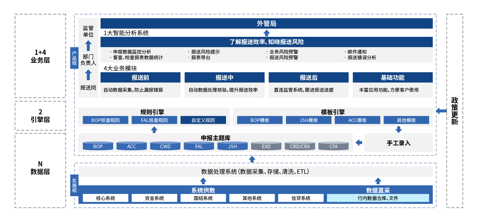 “2”个系统引擎,规则引擎保证报送准确无误,模板引擎助力政策升级快速落地;