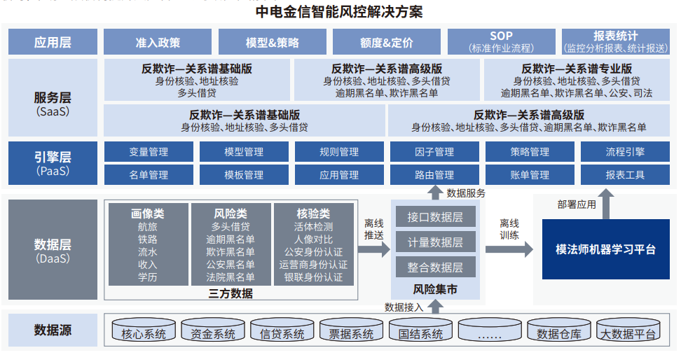 中电金信智能风控解决方案,结合多家金融机构的实施经验,将大数据、工智能技术应用到贷前、贷中、贷后全流程。
